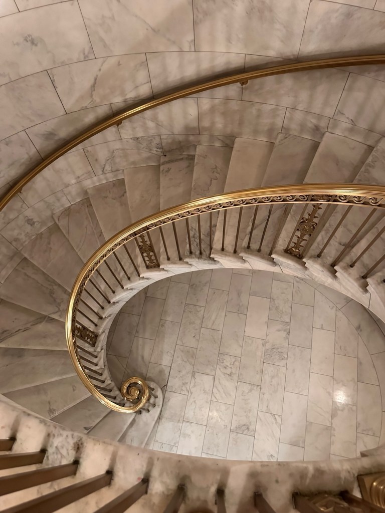 そして、この↓らせん状の階段もあったのですが、予習をせずに行った無知な私は、この階段の何がそんなに特別なのか全く分からず、「ほぉ、、、」としか感じませんでした。